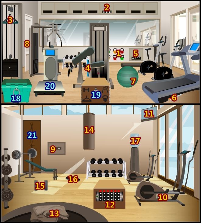 Escapa del gimnasio de oro encontrando todas las pistas y objetos ocultos en el. Relaciona todos los objetos y encuentra las combinaciones correctas para resolver los puzzles.